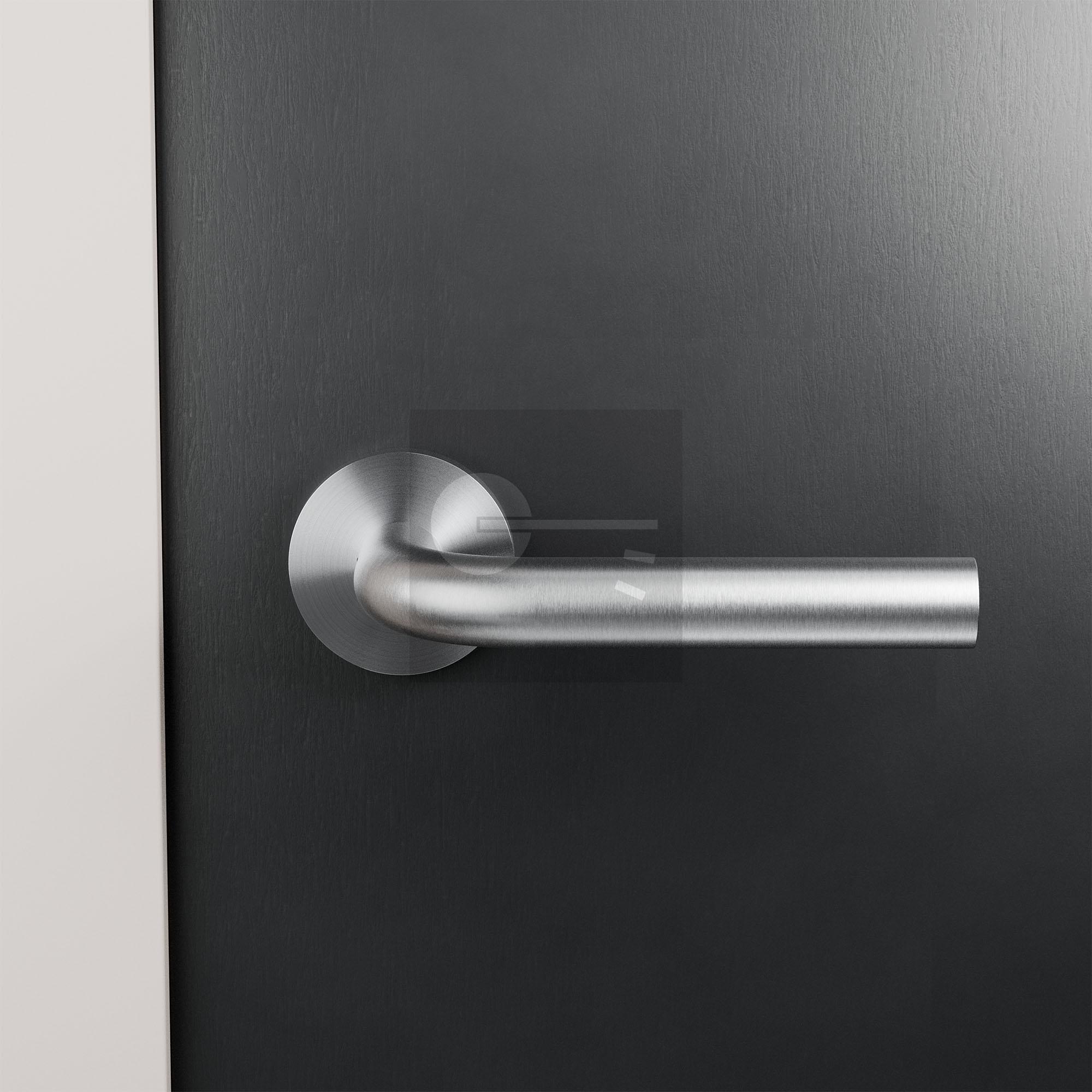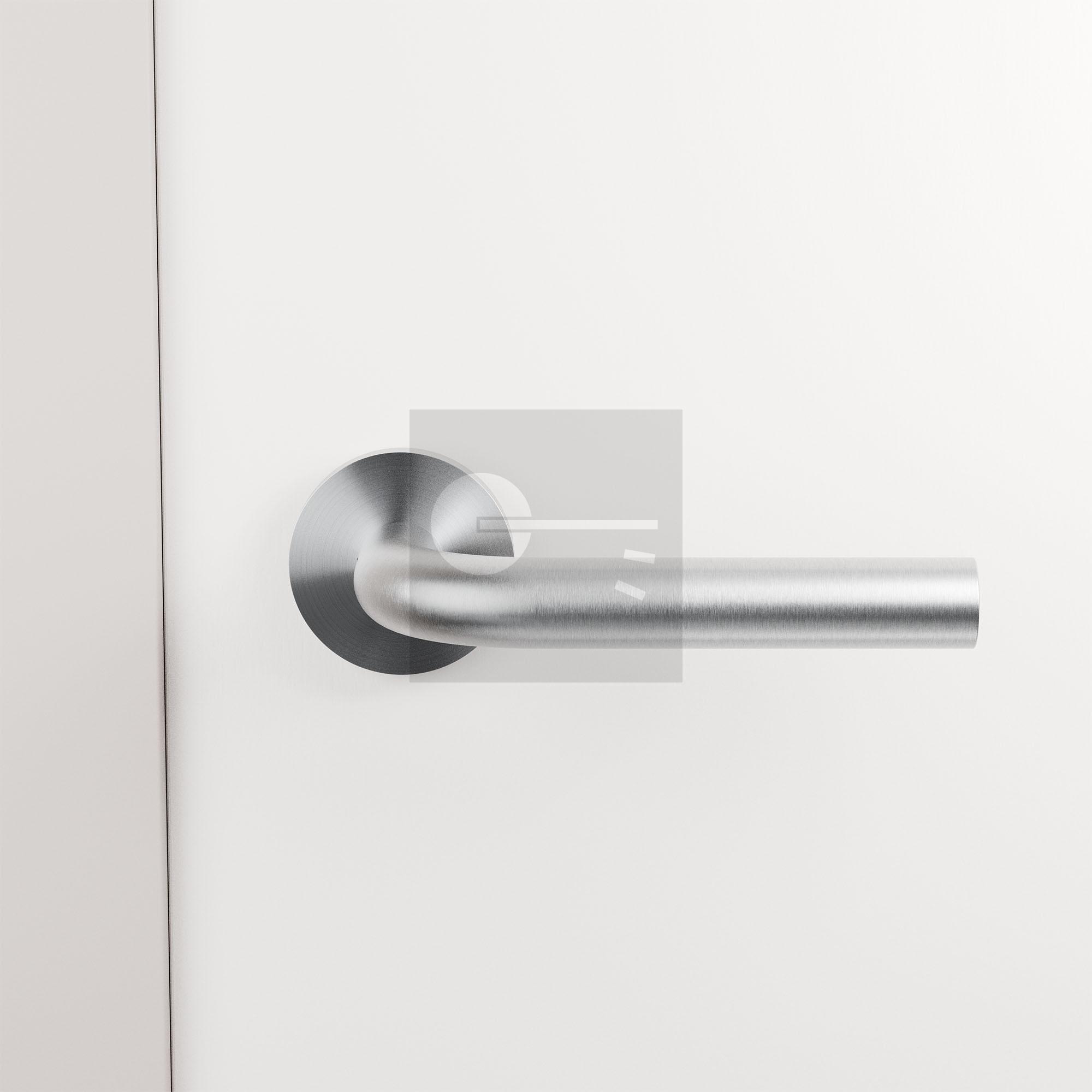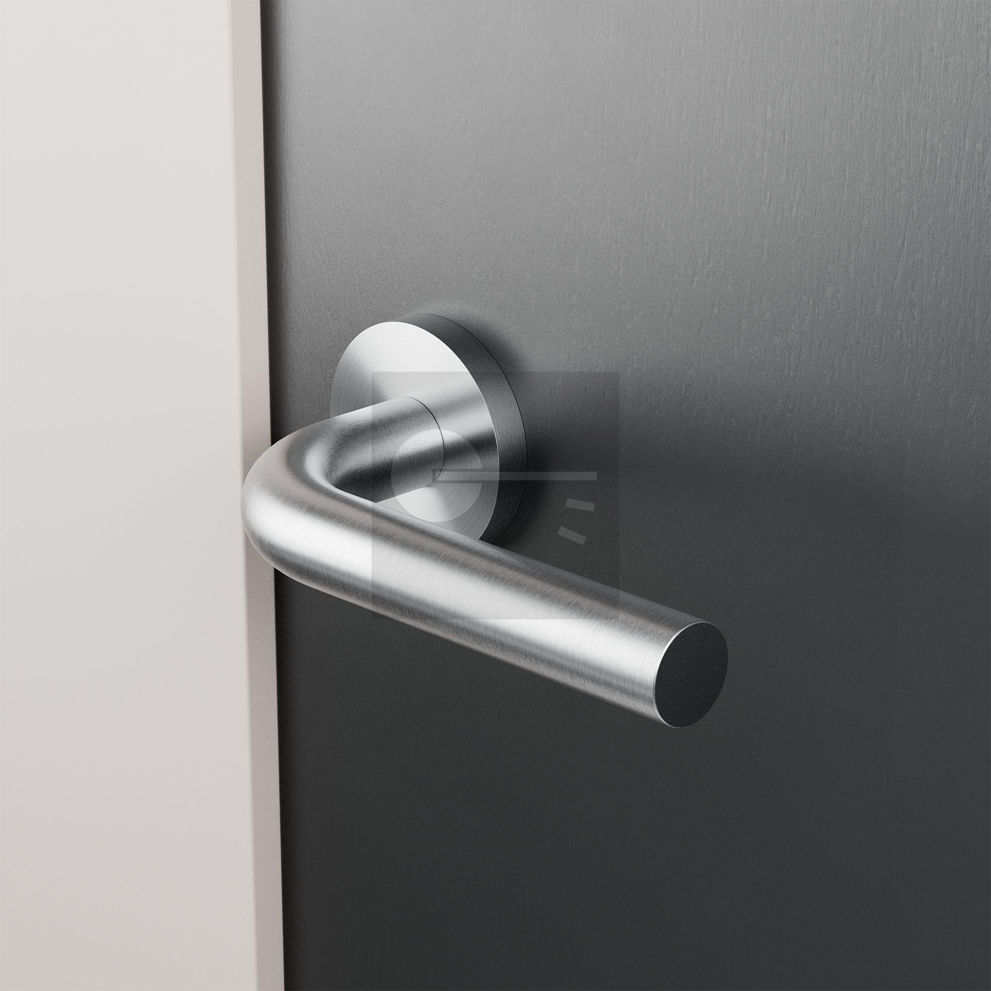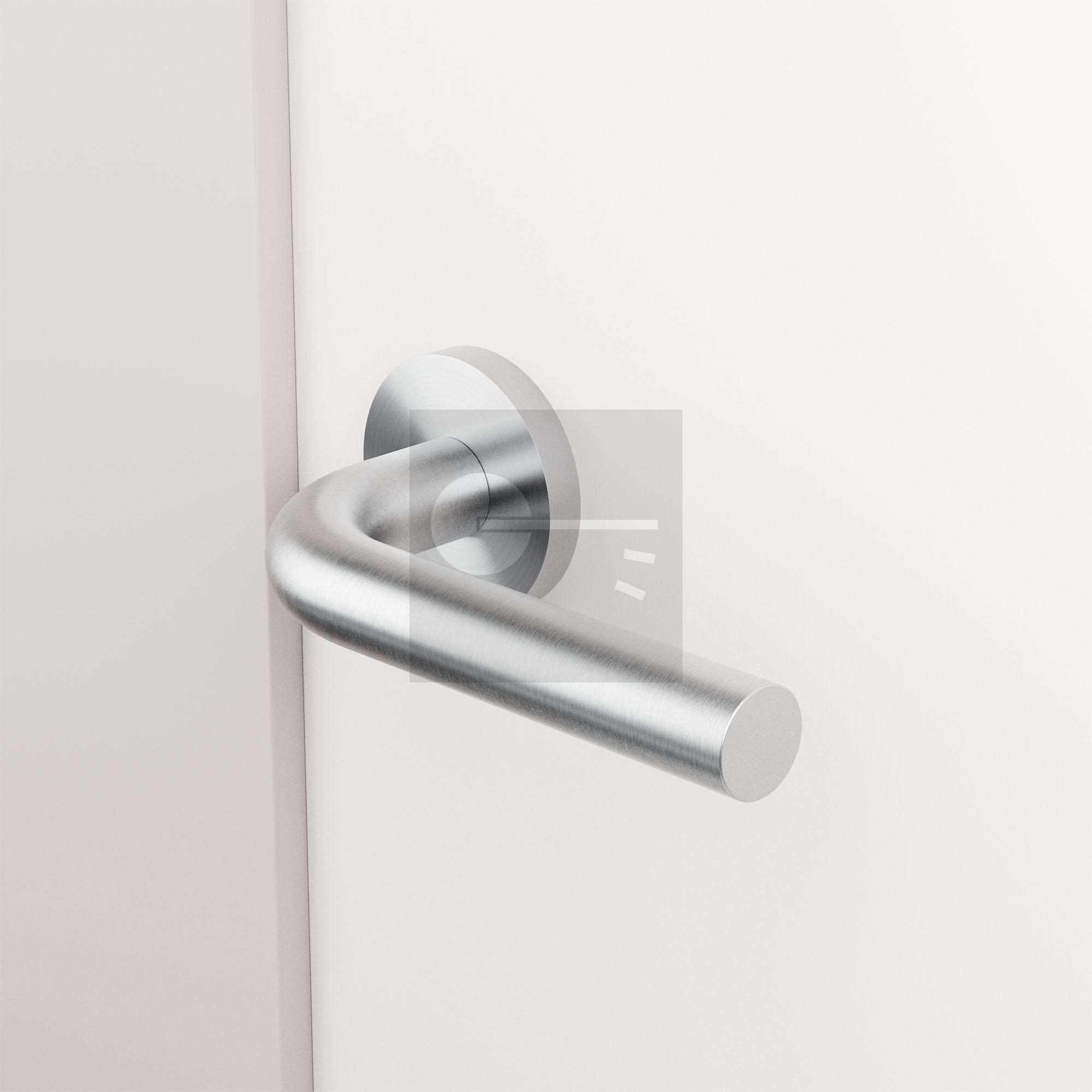 GPF1000.09-00 Aka door handle on rose 50x8mm with GPF0910.00 Turn and Release set 50x8mm satin stainless steel