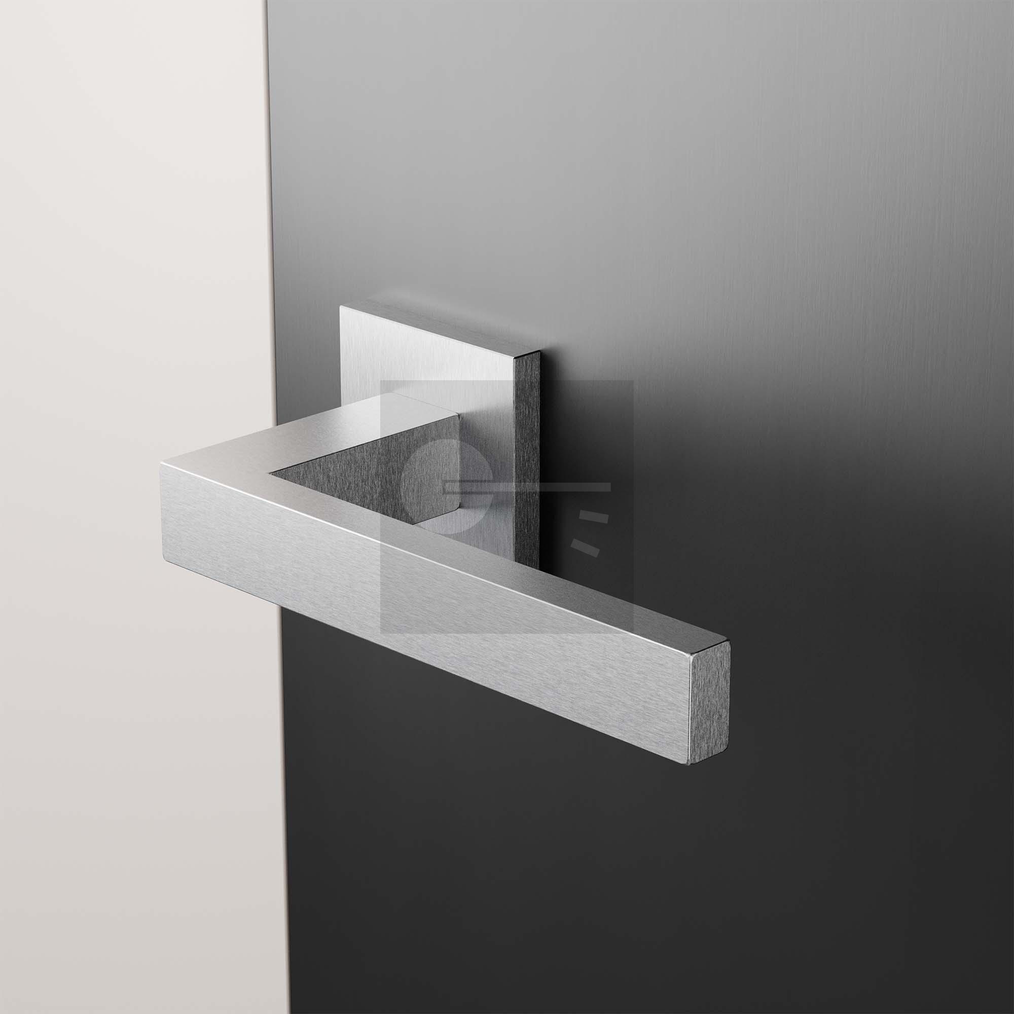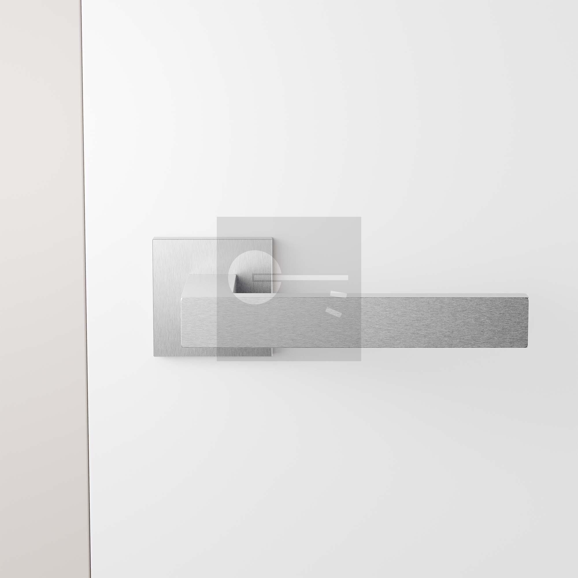 GPF1308.09-02 Zika door handle on square rose 50x50x8mm with 2x GPF0901.02 keyhole escutcheon 50x50x8mm satin stainless steel