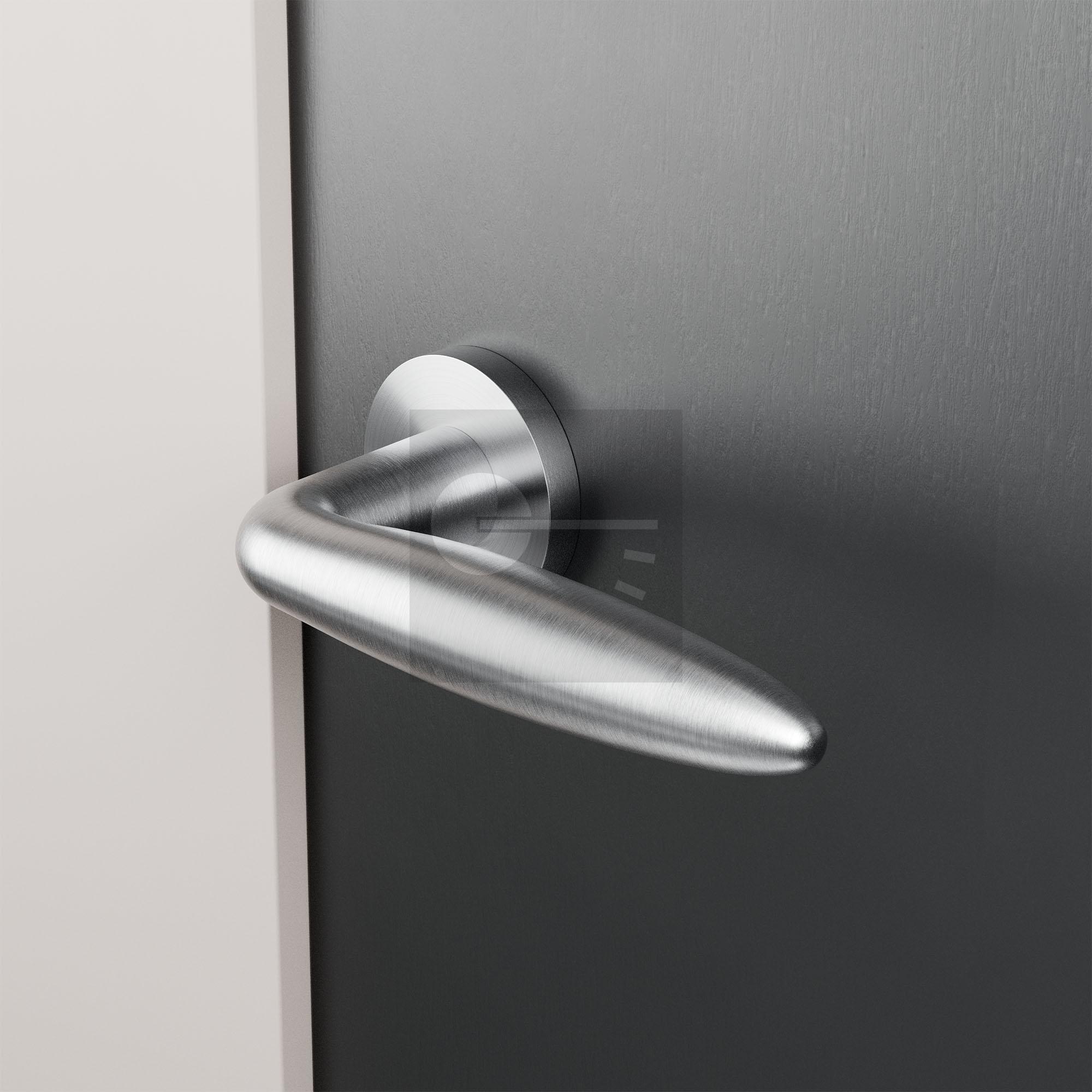 Stainless steel Pepe door handle on rose 50x8 mm.