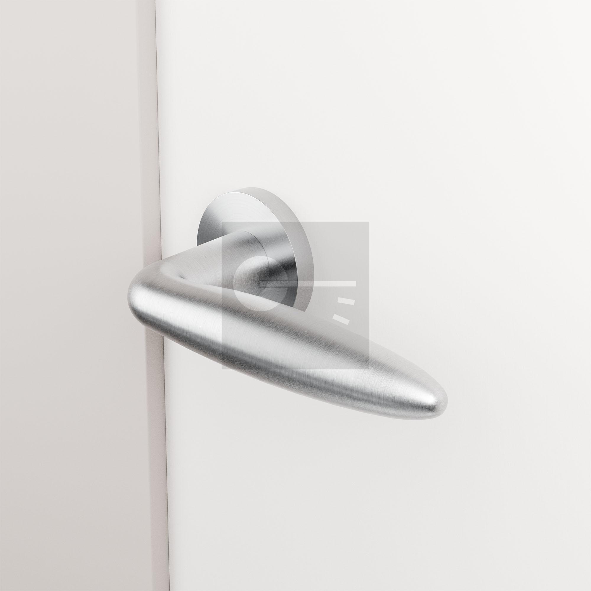 GPF1315.09-00 Pepe door handle on rose 50x8mm with GPF0910.00 Turn and Release set 50x8mm satin stainless steel