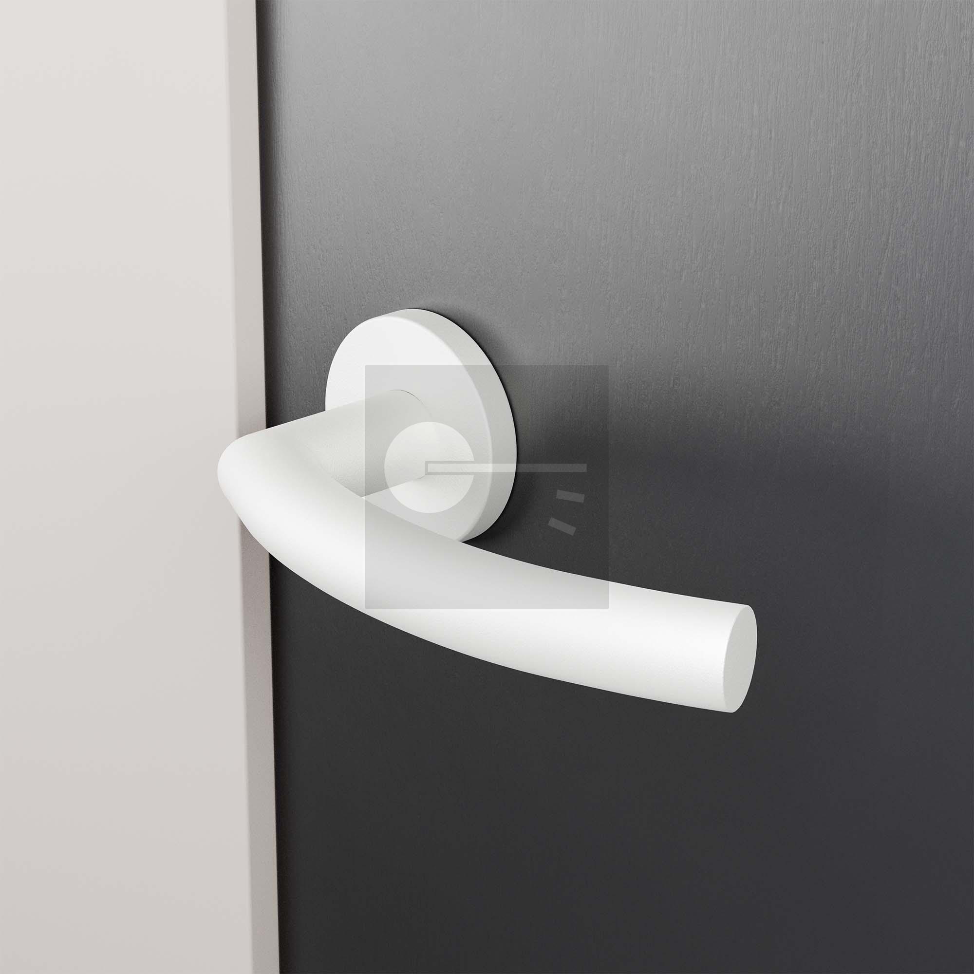 White Tonga door handle L/R on rose 50x8 mm.