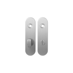 This short backplate of GPF building hardware is executed in satin stainless steel and has rounded corners. The one-sided spring loaded plate has centres of 63 mm for a bathroom lock, a square spindle of 8 mm and a big knob. The plate has a size of 169x46x8,5 mm.