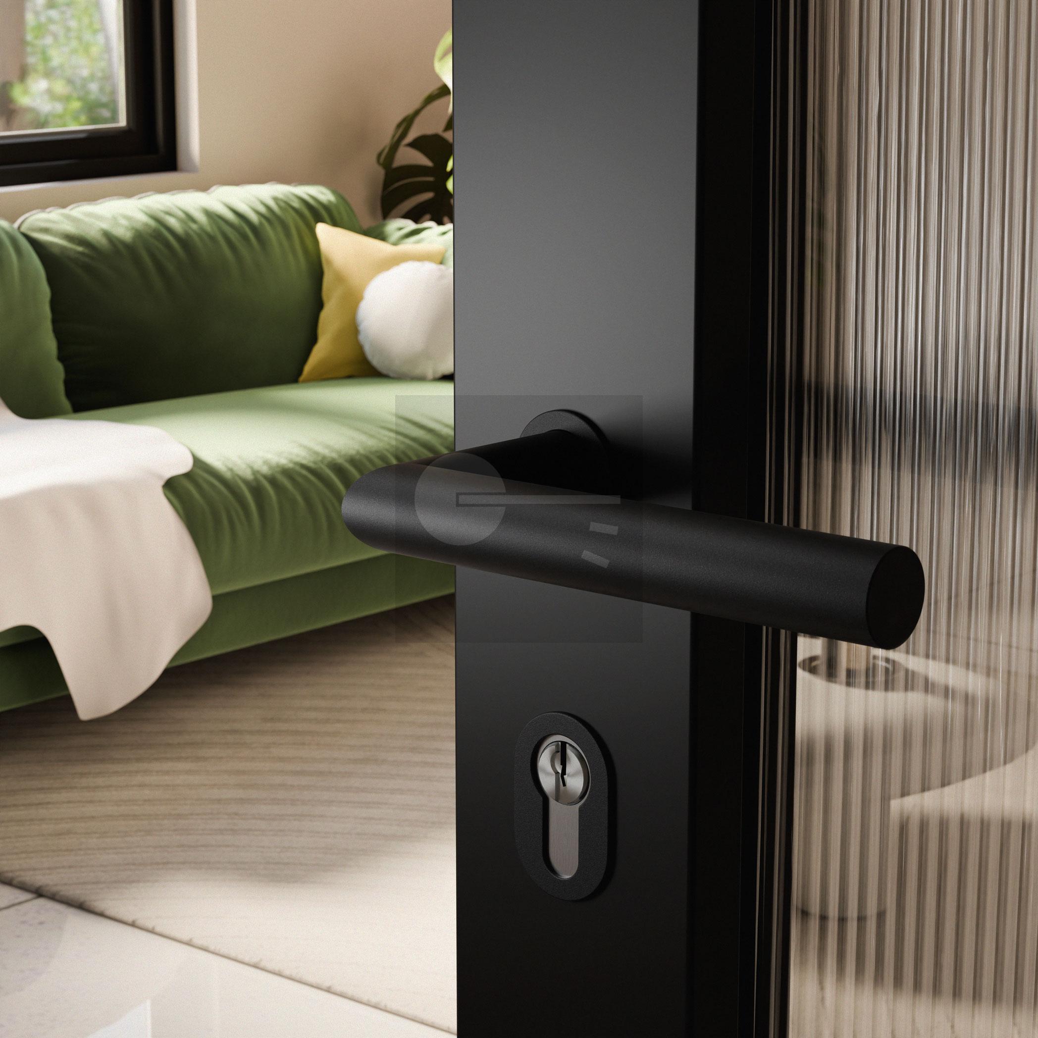 A cylinder rose is the perfect frame for your cylinder. This oval exemplar has a size of 42x28x1,5mm and is executed in the finish black. The mounting of the rose is hidden behind its cover.