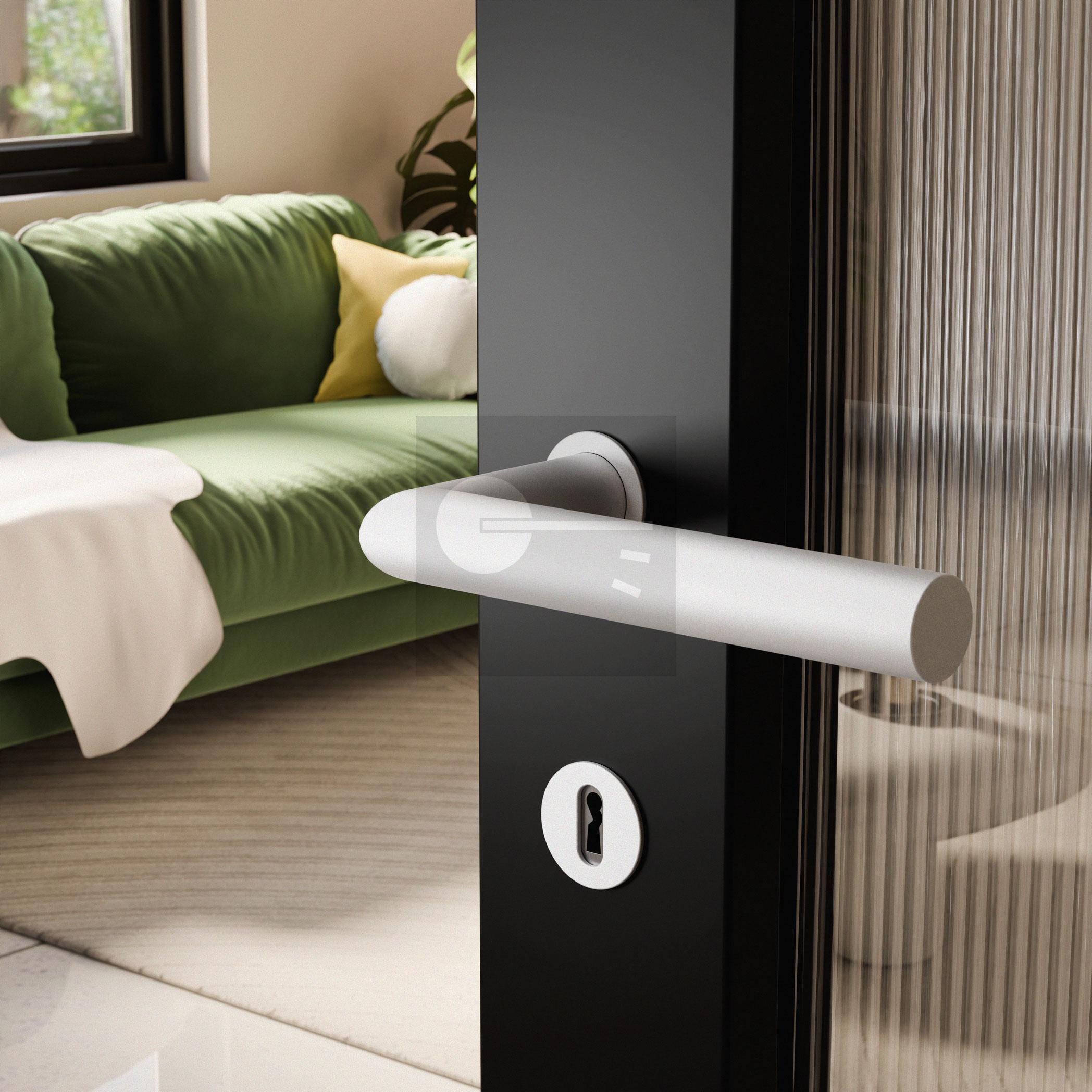 Your traditional keyhole lock gets a neat finish with this escutcheon. The round rose in the finish white has a size of 28x1,5mm. The mounting of the rose is hidden behind its cover.