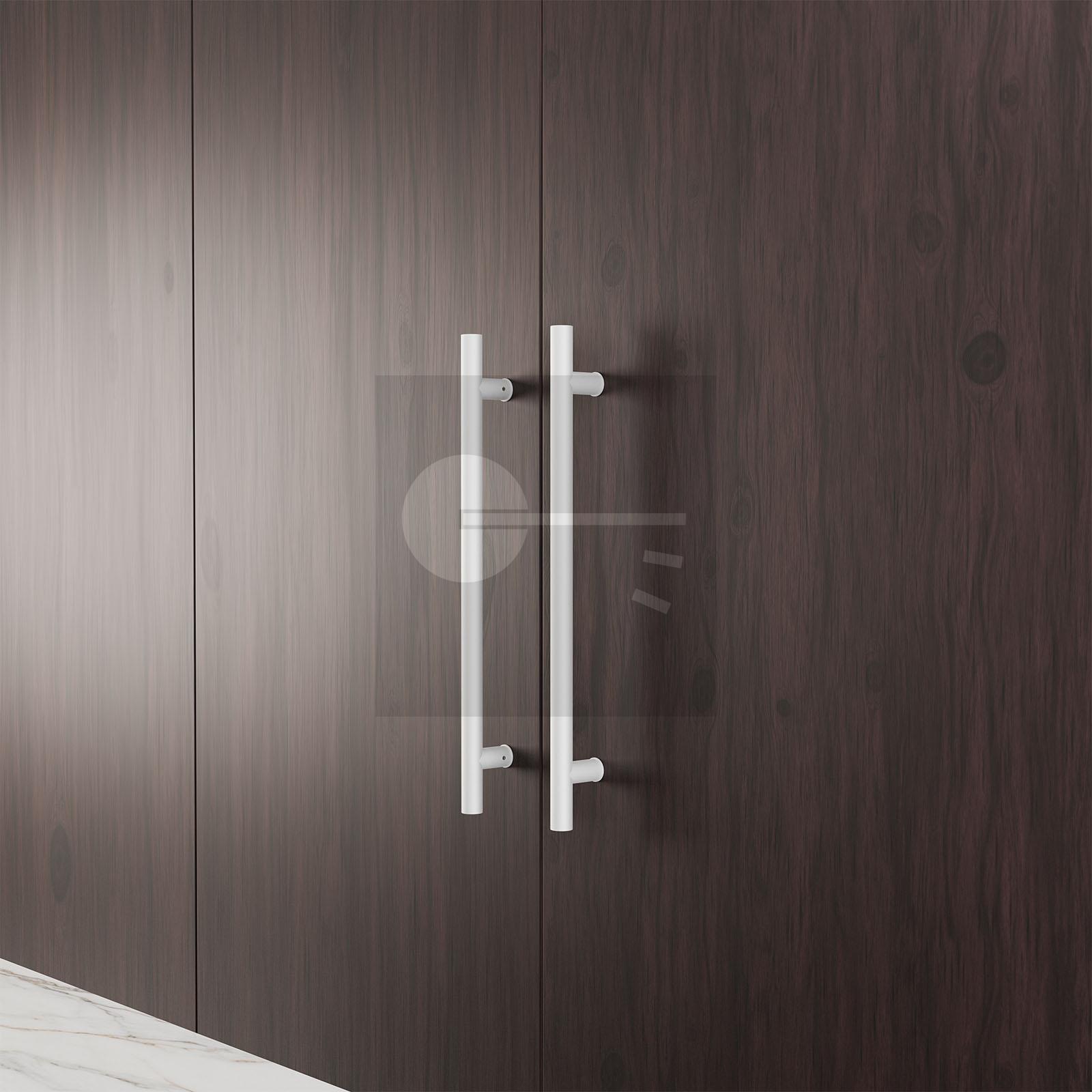 This qualitative pull handle of GPF building is a perfect combination of round and smooth. The handle has a T-model and is executed in white. Its diameter is 25 mm and its length 450 mm. The center to center size is 350 mm.