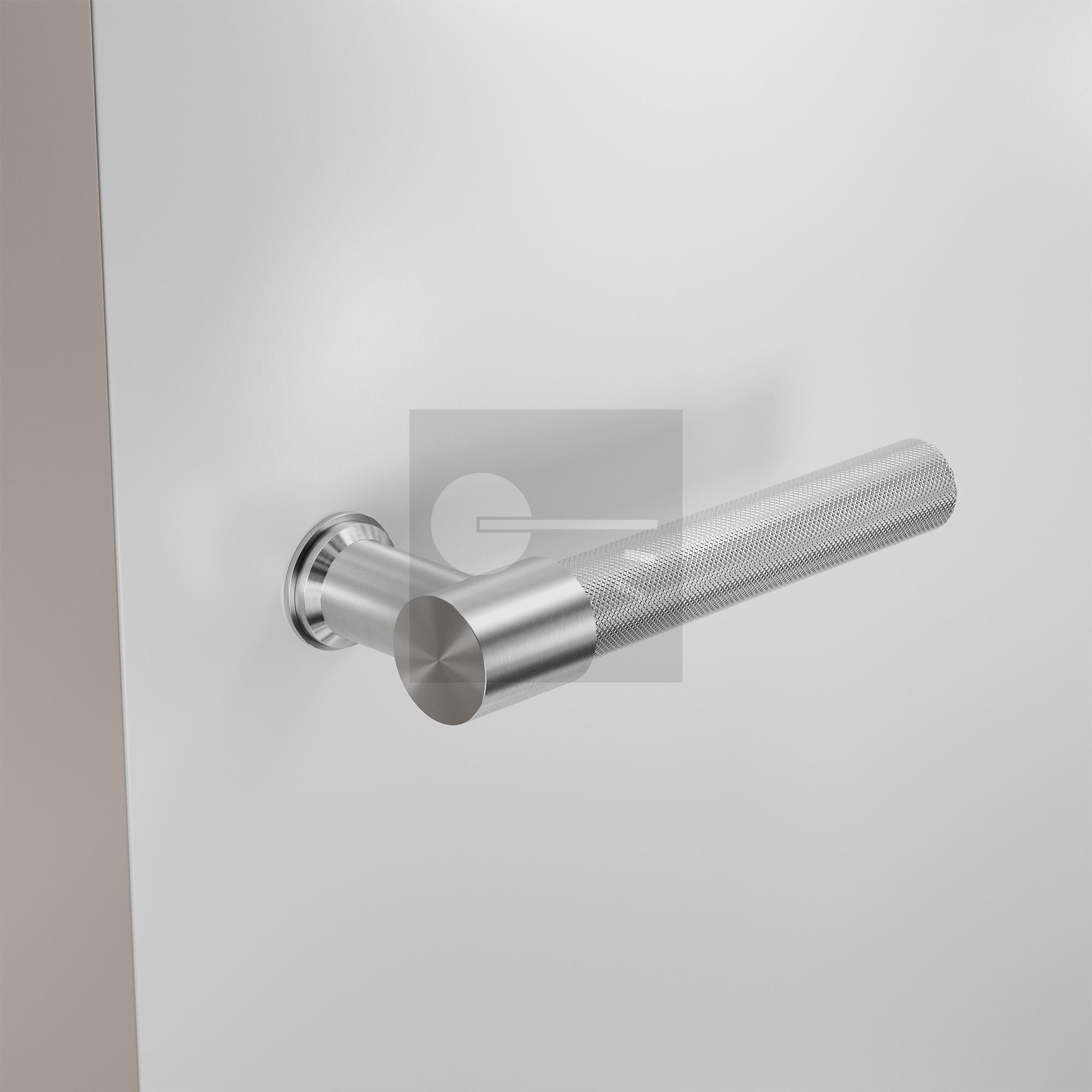 GPF3053.09R Hipi Deux+ diamond long door handle pointing right with GPF1100.00L/R Rose 50x8mm satin stainless steel left-/right turning
