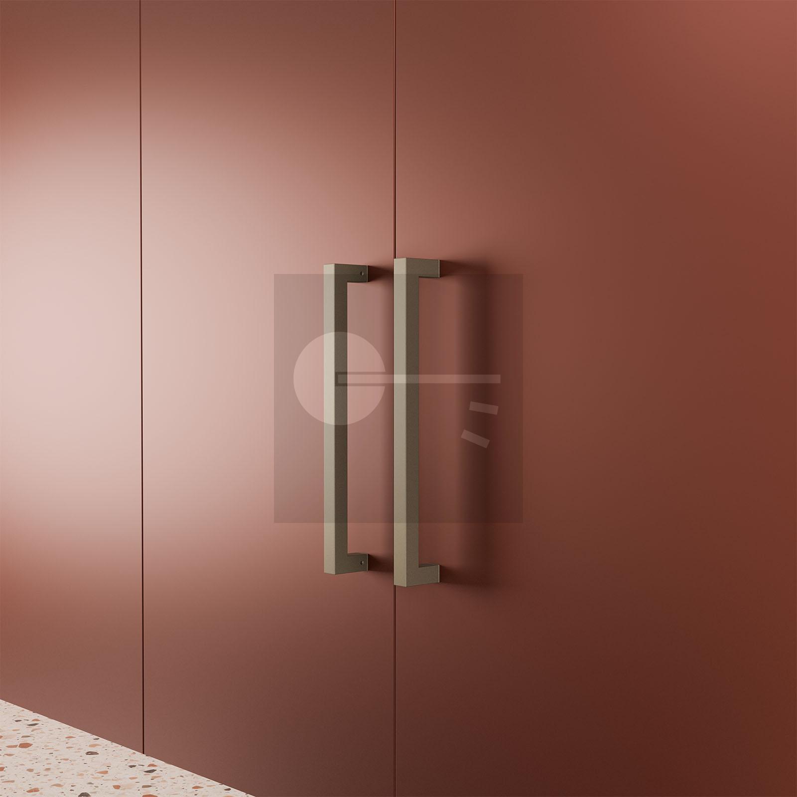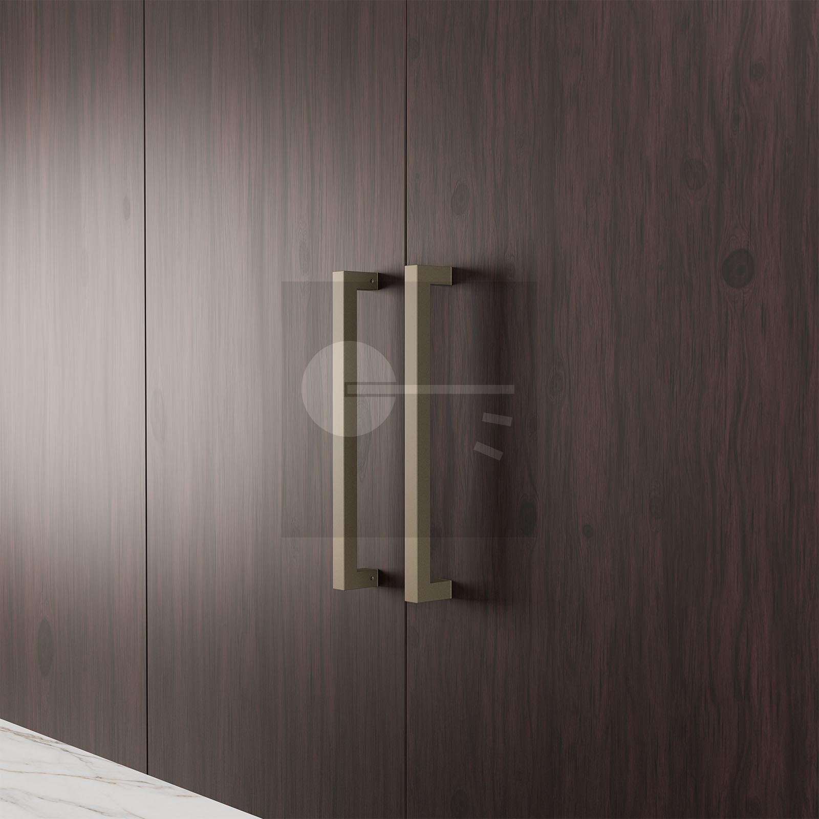 This qualitative pull handle of GPF building hardware has tight, square lines. The handle has a straight model and is executed in Dark blend. The pull handle has a diameter of 30 mm. Its length is 400 mm, with a center to center size of 370 mm.