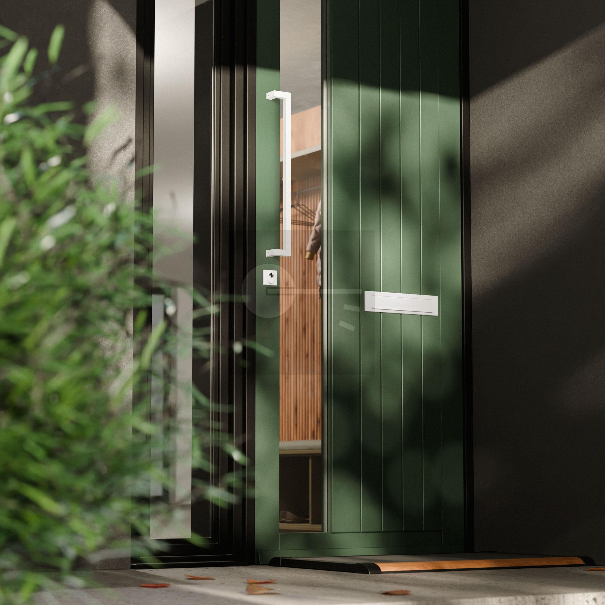 The words ´stylish´ and ´smooth´ describe this model door pull handle best. The handle leaves enough space for your hands and is executed in the finish white. He’s available in several sizes.