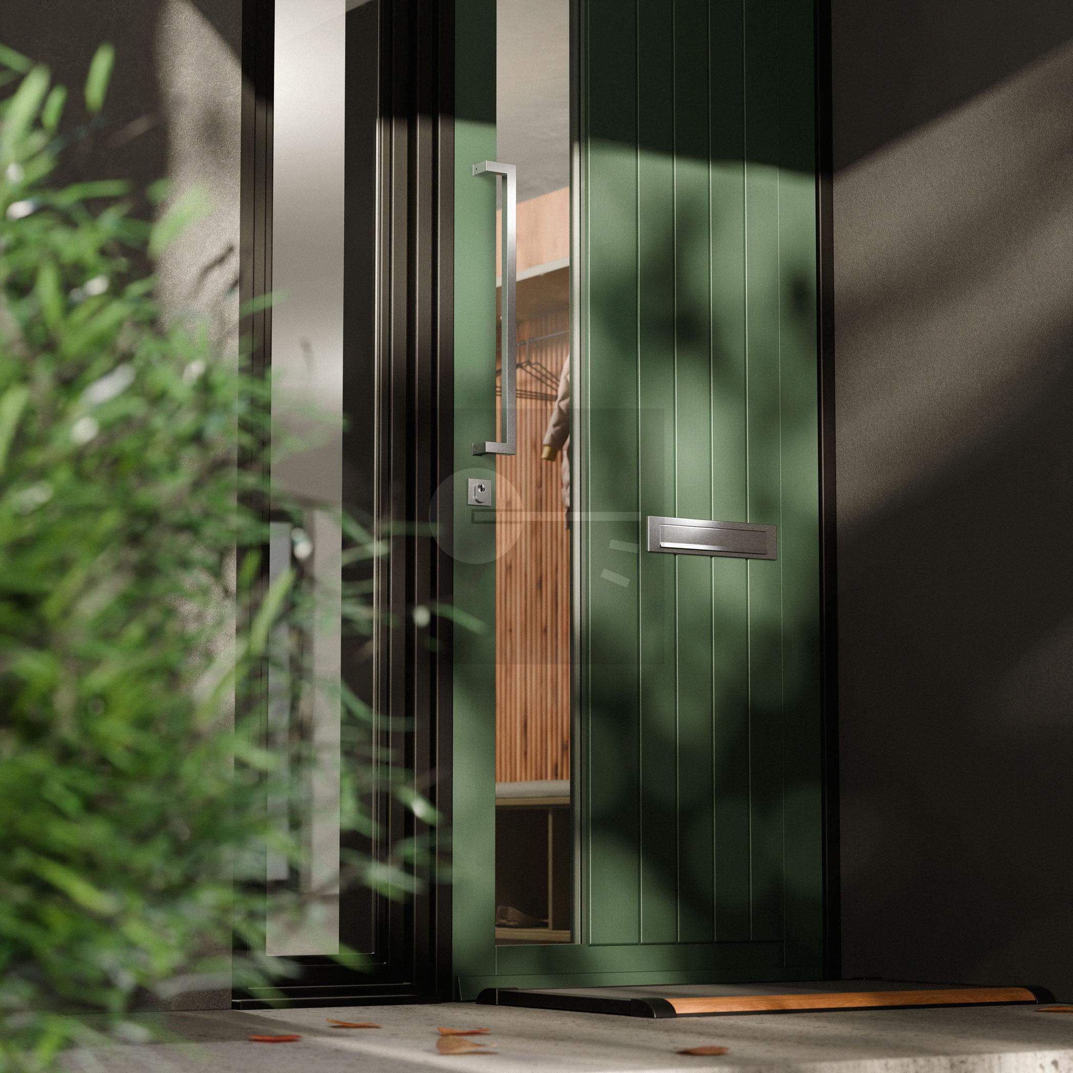The words ´stylish´ and ´smooth´ describe this model door pull handle best. The handle leaves enough space for your hands and is executed in satin stainless steel. He’s available in several sizes.